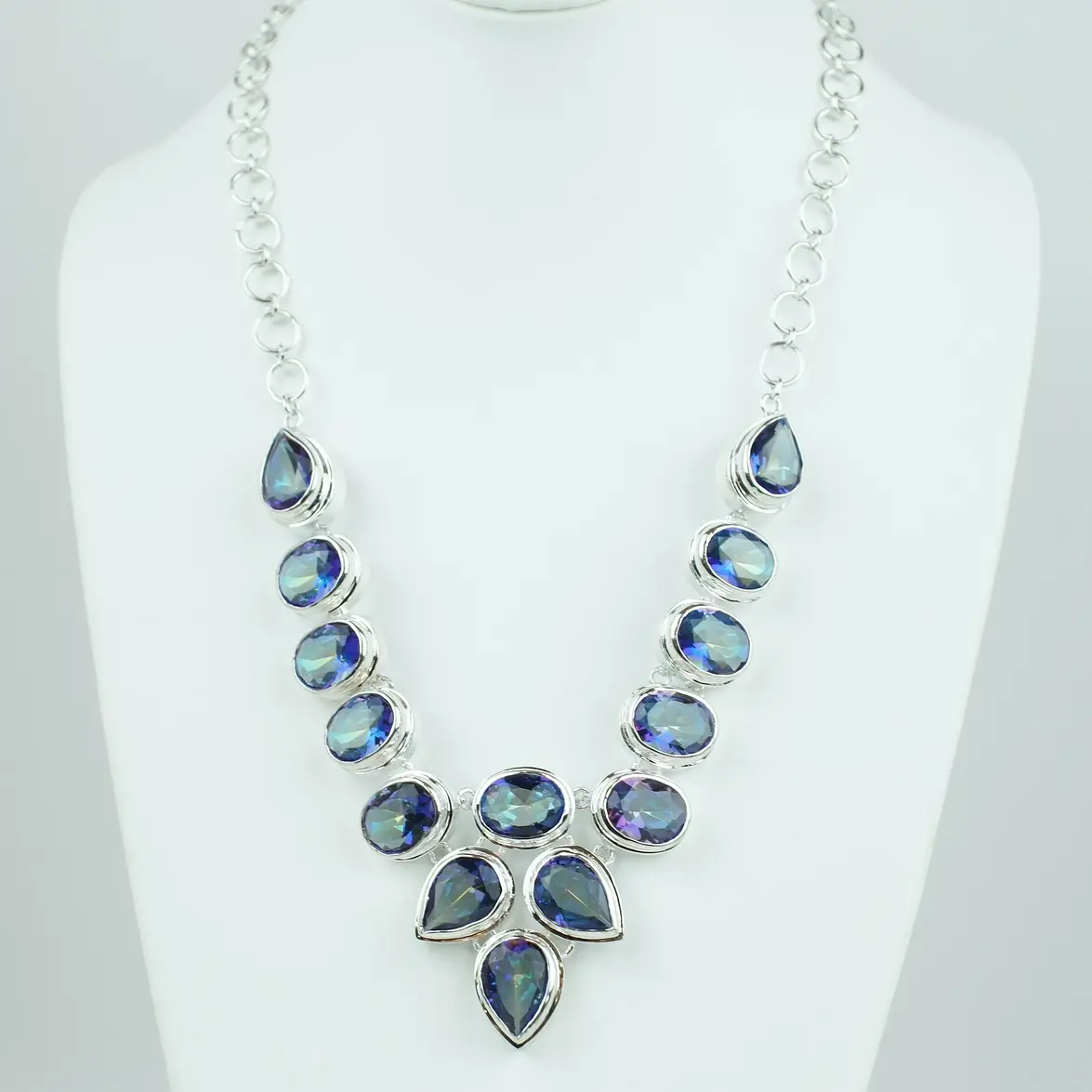 Elegante y llamativa, esta gargantilla de plata realza cualquier look con sus 14 piedras de topacio.